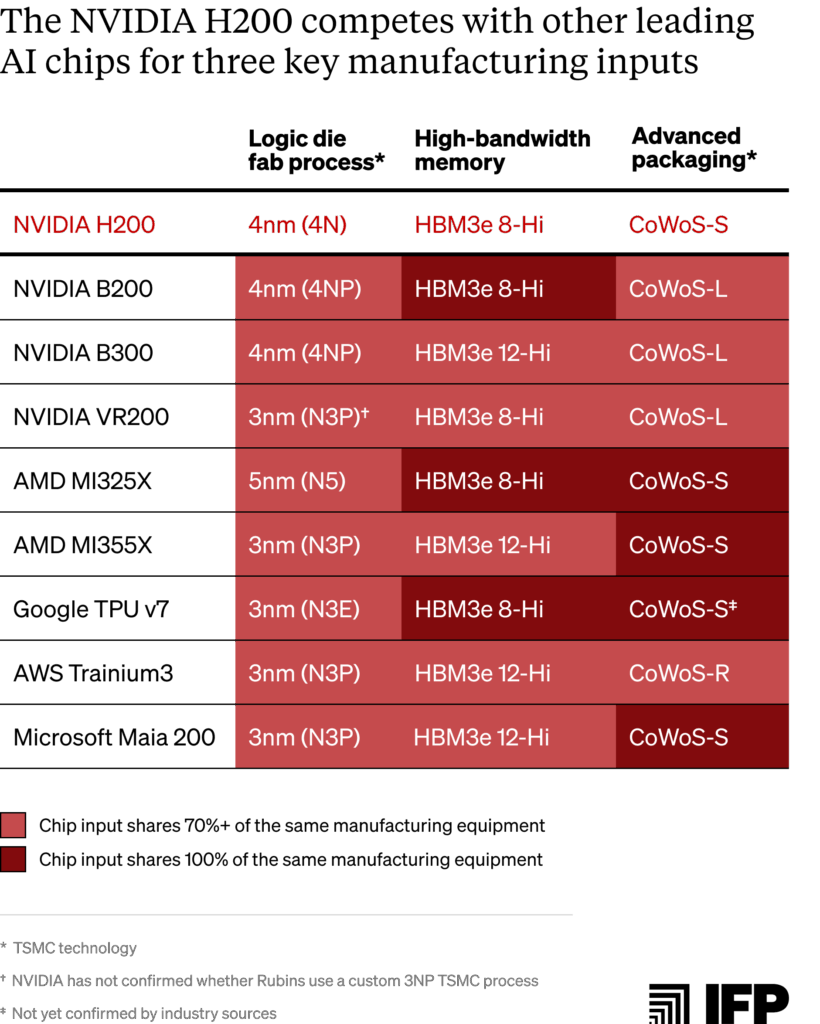 It is highly likely that all three conditions apply to H200 production for China in 2026. First, all leading US AI chips compete with the H200 for the manufacturing capacity of at least one key input: advanced logic wafer production, high-bandwidth memory (HBM), and advanced packaging.